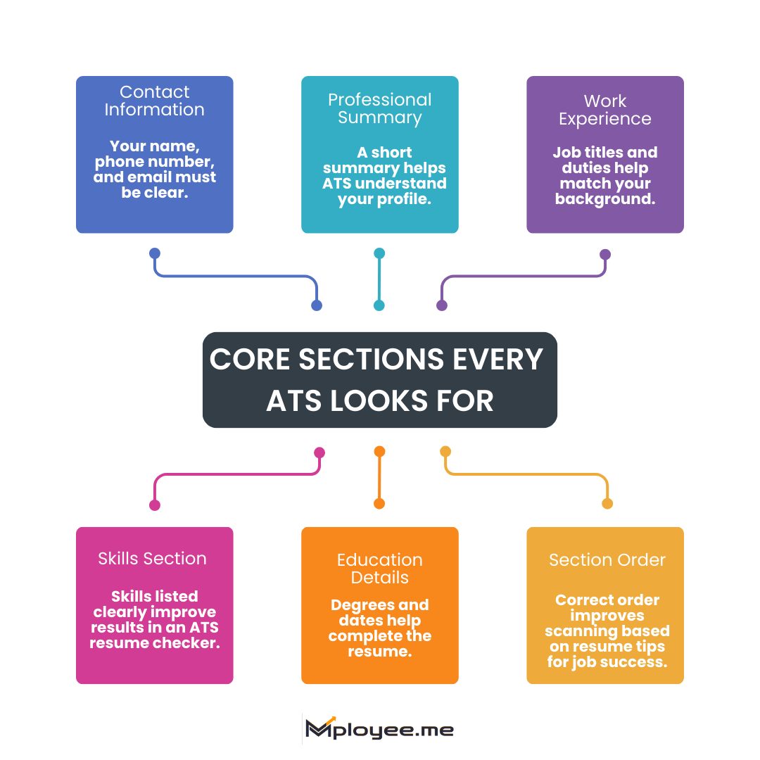 The system uses these sections as checkpoints to monitor progress. Your resume processing accelerates when the sections of your resume maintain their proper standards.