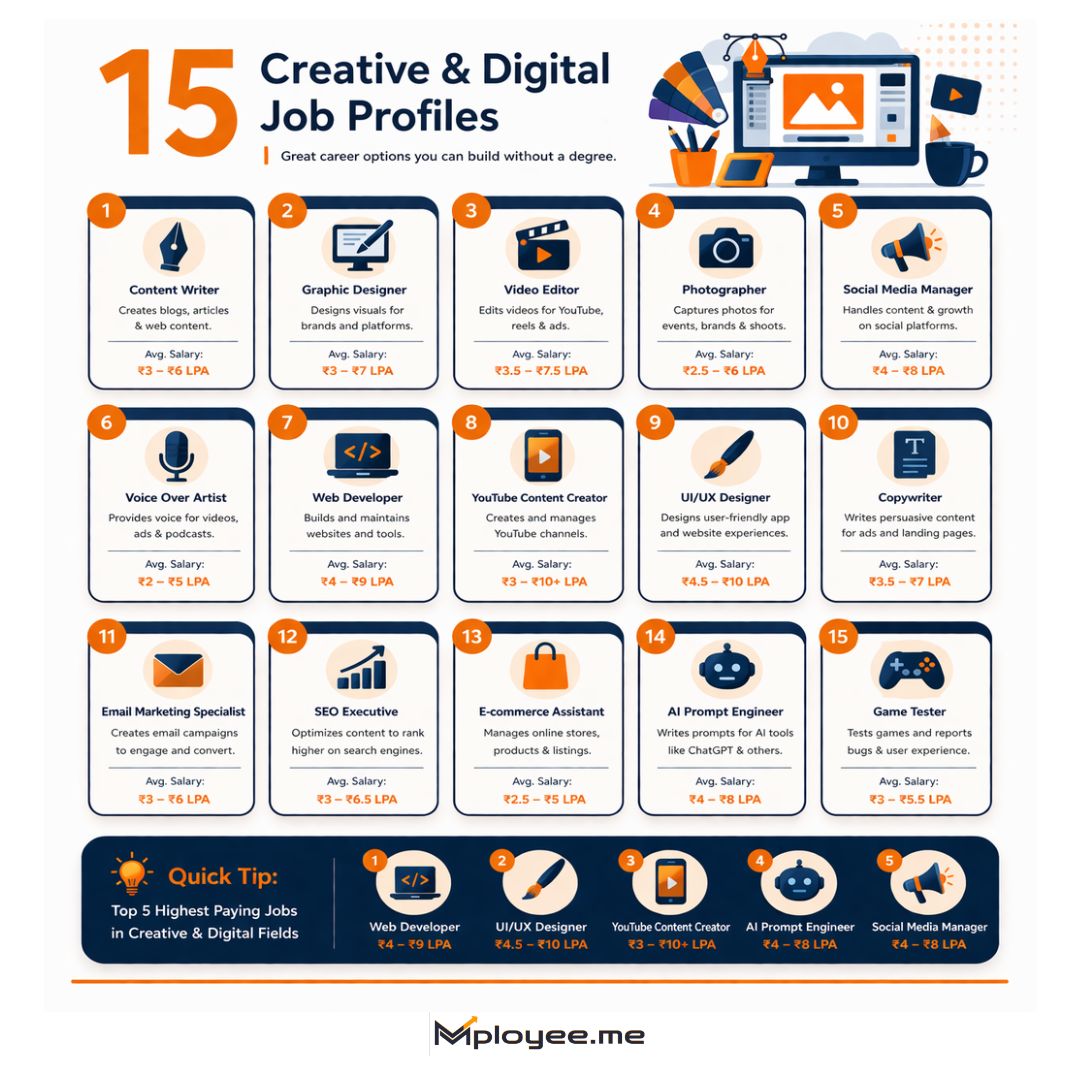 There are many jobs today where your ideas matter more than your degree. If you enjoy creating things, these roles can help you earn well and grow fast. Below are some of the best no degree creative jobs that people are choosing today. These are also great options if you are looking for creative careers without a degree.