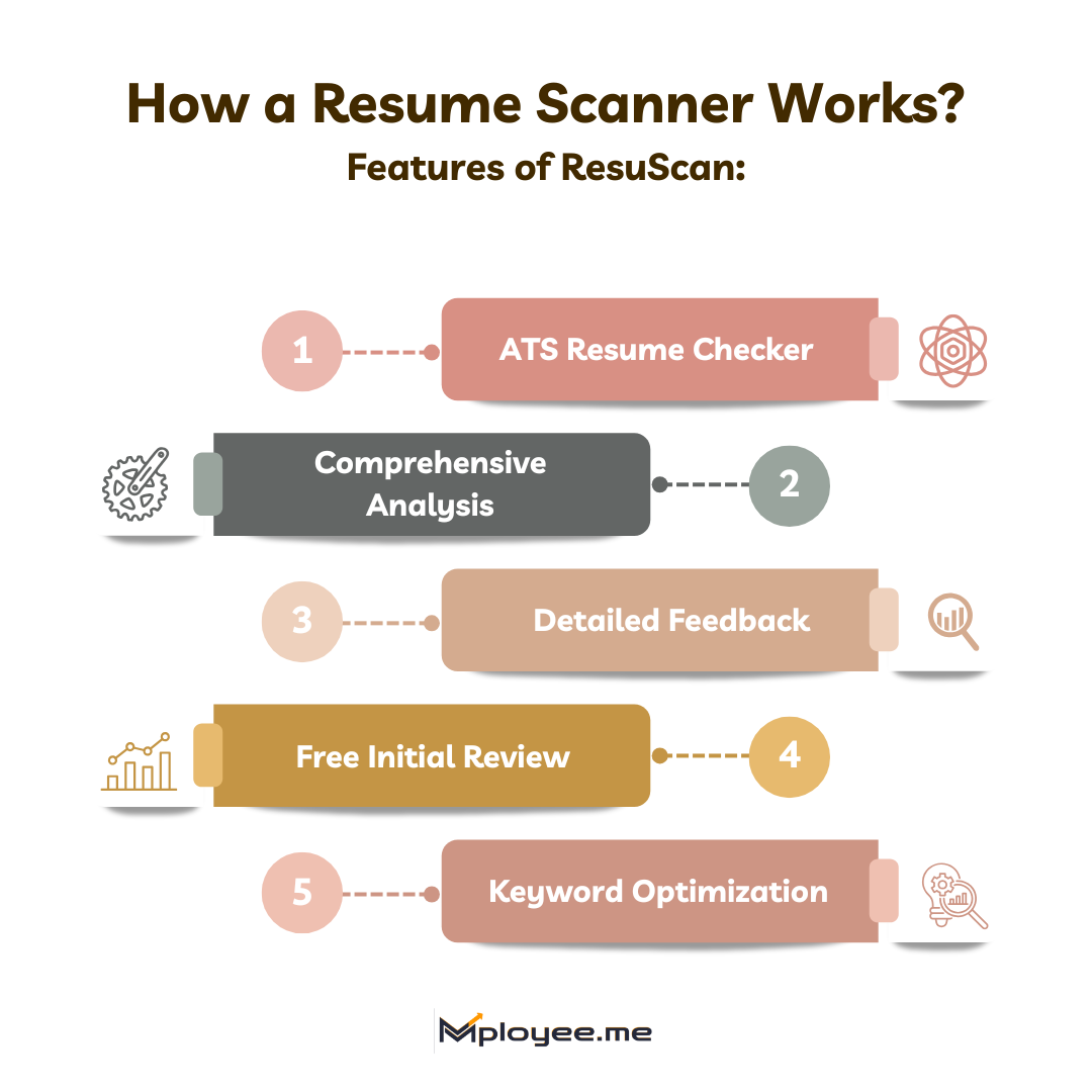 A resume scanner behaves like ATS and reads your resume. It assesses the format, keywords, and structure to give an ATS resume score. ResuScan is a fantastic and powerful tool which makes this process simple and effective.