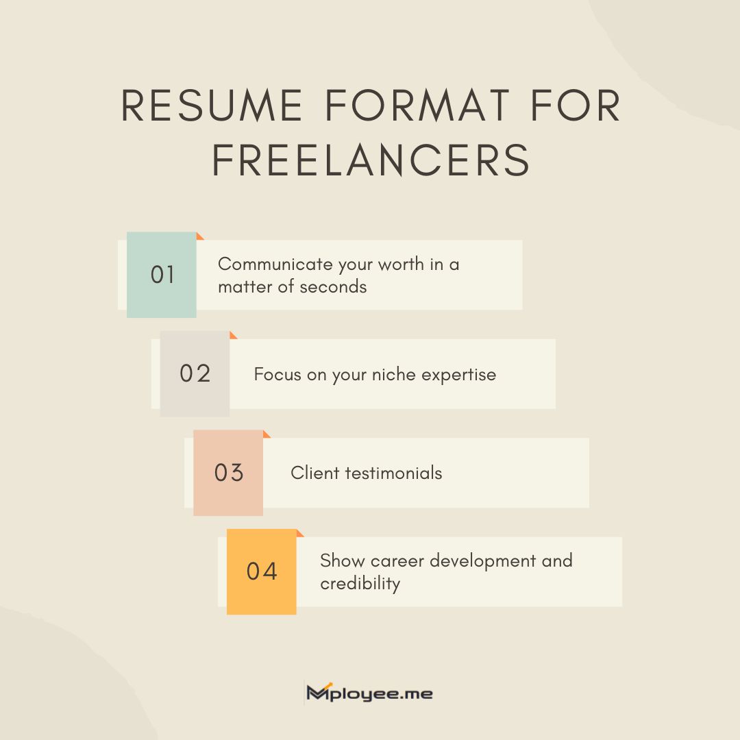 The freelance resume needs to be visually clear and elegant-looking, straightforward to read, and professionally formatted. Some things to follow that make a resume impactful are: