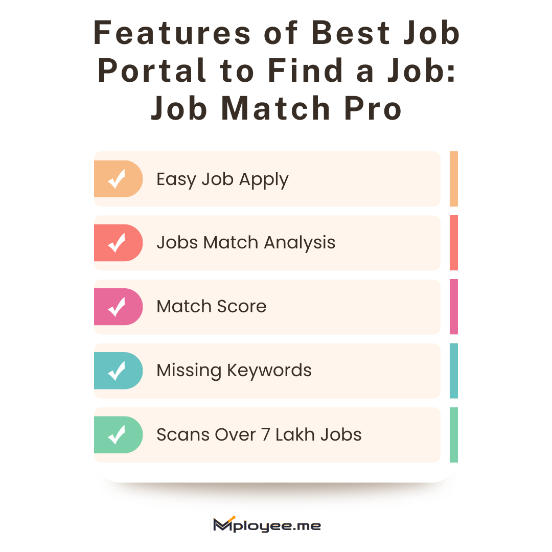 Match Score: Get the score match between your resume and the job profile. Don't apply for jobs with a match score less than 60 percent. This practice makes sure that you are directing your applications to find jobs that match with resume.